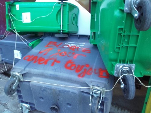 • Après un début poussif de la mobilisation en octobre, les choses se sont accélérées fin janvier, avec des AGs plus massives, des barrages filtrants et une bataille de tags dans le campus. Voir sur La Bogue.